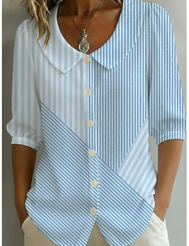 Per donna Camicia Floreale Grafico Vintage Elegante Essenziale Mezza Manica Collare Peter Pan Top lunghi Quotidiano Ferie Uscire Blu Azzurro Estate Primavera