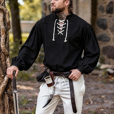 Medievale Rinascimento 17° secolo Lunghezza media Blusa / Camicia Costume Cosplay Cavaliere Celtico Elfico Coulisse Tinta unica Costume Per uomo Costumi da pirata Fantasia Halloween Mascherata Casual
