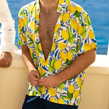 Per uomo Giallo limone Camicia Camicia hawaiana estiva Camicia Aloha Manica Lunga Camicia Collo ripiegato Sport Moda Streetwear Casuale Quotidiano All'aperto Giallo S M L