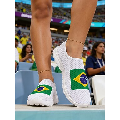 Sneakers slip-on da donna con bandiera del Brasile: scarpe casual leggere e traspiranti, perfette per gli appassionati di calcio, i viaggi e gli outfit estivi.