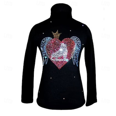 Giacca di pile per pattinaggio ghiaccio Per donna Da ragazza Pattinaggio sul ghiaccio Giacca di pelle Completi Superiore Nero Elastene Elevata elasticità Addestramento Competizione Vestiti da