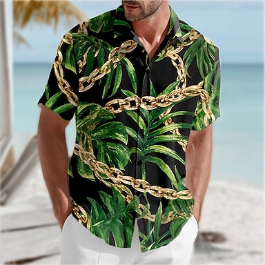 Per uomo Foglia di palma Piante tropicali Camicia Camicia hawaiana Camicia con bottoni Manica corta Hawaiano Ricorrere Da mare Per eventi Abbigliamento mare Estate Primavera Collo ripiegabile Stampa