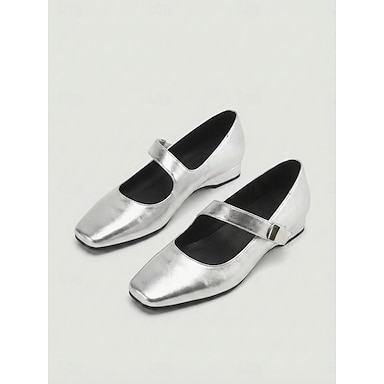 Décolleté Mary Jane da donna con zeppa bassa color argento - scarpe eleganti minimaliste e comode per feste in giardino