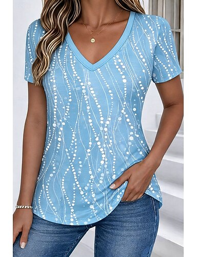 Per donna Maglietta Stampato Grafico A Pois Elegante Classico Casual Manica Corta Scollo a V Top Regolari Quotidiano Blu Nero Rosso Viola Verde Estate Primavera