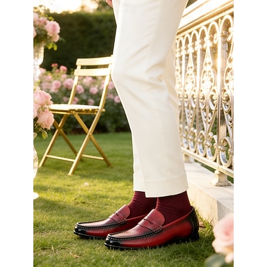 mocassini da uomo in pelle bordeaux – stile classico con vestibilità comoda, ideali per matrimoni, riunioni di lavoro e occasioni serali