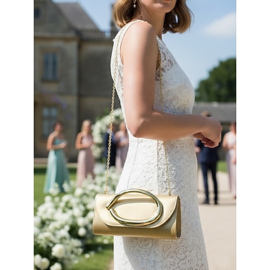 pochette da sera metallizzata da donna con manico dorato, elegante borsa a tracolla in similpelle, opzioni multicolore per matrimoni, cocktail party ed eventi formali