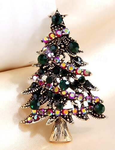 spilla a forma di albero di Natale – spilla natalizia con cristalli scintillanti verdi e arcobaleno per donna