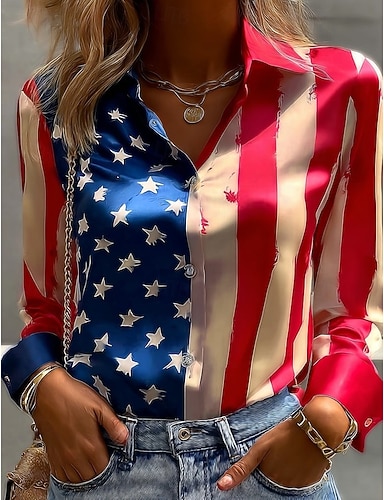 Giorno dell'Indipendenza Americana Per donna Camicia Camicia in raso Stampato Floreale Grafico Bandiera Bohemien Vintage Elegante Manica Lunga Colletto a Camicia Top lunghi Quotidiano Ferie Uscire
