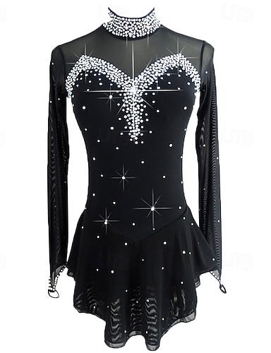 Vestito da pattinaggio artistico Per donna Da ragazza Pattinaggio sul ghiaccio Vestiti Nero Elasticizzato Addestramento Competizione Vestiti da pattinaggio sul ghiaccio Tenere al caldo Cristalli