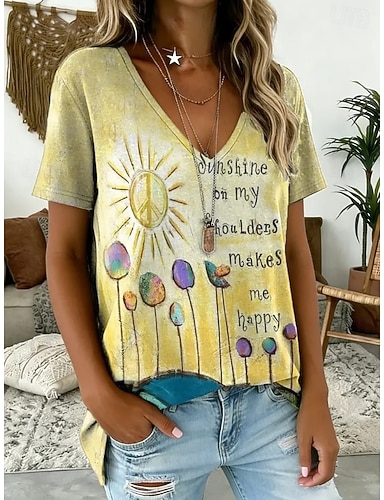 Per donna Maglietta Stampato Floreale Grafico Piante Vintage Elegante Classico Manica Corta Scollo a V Top lunghi Casuale Quotidiano Weekend Blu Bianco Giallo Verde scuro Blu turchese Estate Primavera