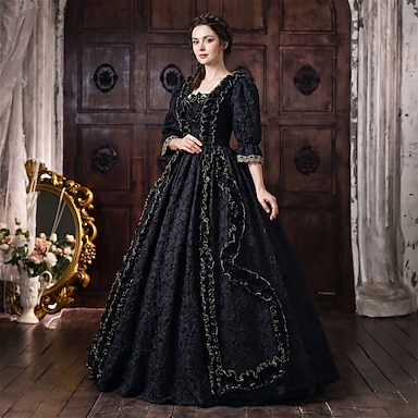 Rococò Barocco Abito da Ballo Lunghezza al pavimento Abito da Ballo Girocollo Maniche corte Principessa Sposa Abiti reali Fuori dalla spalla Abito da ballo Collo quadrato Costume Per donna Reale