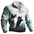 Per uomo Animale Lupo Pile Felpa Moda Casual 3D Collo alla coreana Zip a un quarto All'aperto Vacanza Regalo Abbigliamento casual alla moda Blu Blu 1 Blu 3# Blu 2# Mezza cerniera Autunno Inverno
