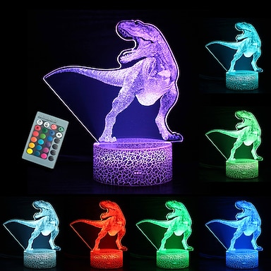 dinosauro giocattoli 16 colori 3d lampada da scrivania illusione con luce notturna telecomandata per regali per bambini decorazioni da comodino camera da letto