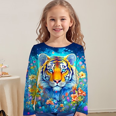Da ragazza 3D Gatto T-shirt Camicia Manica lunga Stampa 3D Primavera Autunno Attivo Di tendenza stile sveglio Poliestere Bambino 3-12 anni Girocollo Esterno Informale Giornaliero Standard