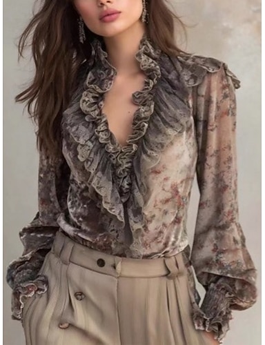 Per donna Camicia Camicia casual Camicia con volant Grafico Astratto Elegante Classico Casual Manica Lunga Scollo a V Top Regolari Quotidiano Ferie Uscire Cachi Primavera Autunno