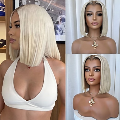 Parrucca con chiusura in pizzo 5x5 senza colla, 100% capelli umani brasiliani remy, parrucca frontale in pizzo 13x4, parrucca con capelli umani biondo cenere lisci con capelli ombré e mèches colorate