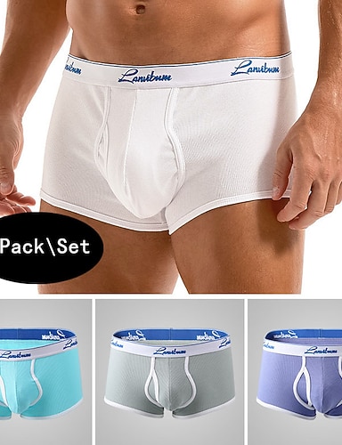 Per uomo 2 pacchi Boxer Poliestere Traspirante Morbido Color Block Vita normale Bianco Giallo