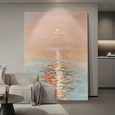 Dipinto ad olio fatto a mano su tela, decorazione murale moderna astratta con alba rosa sul mare, paesaggio per arredamento domestico, con cornice da appendere/arrotolato, senza cornice, dipinto non