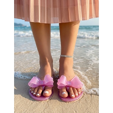 Ciabatte da spiaggia rosa da donna - romantici sandali con fiocco oversize e comoda suola piatta, perfetti per le vacanze estive e le fughe su isole tropicali. &abbigliamento casual da resort