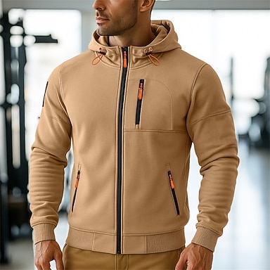 Per uomo Felpa con cappuccio e zip Giacca felpata Felpa con cappuccio Abbigliamento esterno Nero Blu Reale Blu Cachi Grigio chiaro Con Cappuccio Tinta unica Lavoro Casuale Abbigliamento casual alla