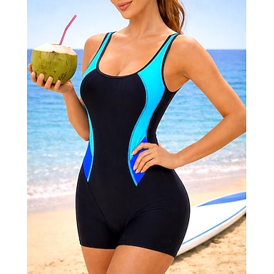 Per donna Top sottomuta Costume da bagno One Piece Color-blocking Con zip Protezione UV Elastico Manica Lunga Costume da Bagno Surf Spiaggia Nuoto Estate