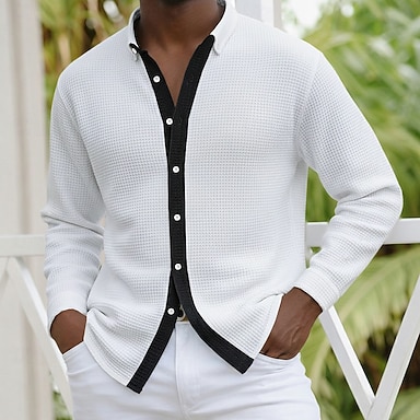 Per uomo Camicia Camicia a nido d'ape Camicia casual Camicia con Bottoni Bianco Vino Blu Verde Kaki Manica Lunga Blocco di colori Bavero Casuale Quotidiano Blocco di colore Abbigliamento Moda Moderno