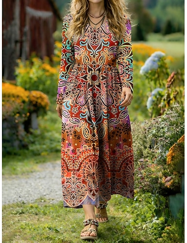 ragazze' 3D Floreale Abito Vestito con Volant Manica Lunga Estate Primavera Vacanza Quotidiano Ferie Bello Dolce Bambini 4-12 Anni Vestito Casual Lunghezza al ginocchio Vestibilità regolare