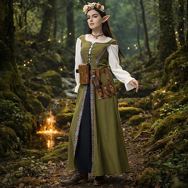 Set Retrò Vintage Medievale Rinascimento Lunghezza al pavimento Vestito Copricapo Accessori con accessori Lunghe Elfo Ranger Costume Per donna Halloween Carnevale Mascherata Festa a Tema Fiera