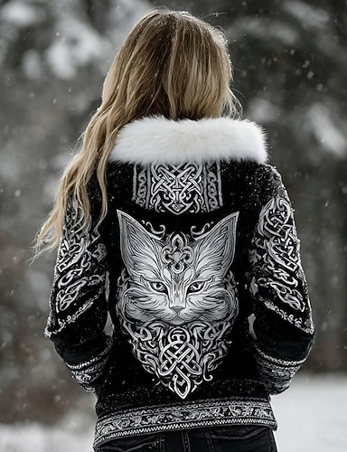 Per donna Felpe con cappuccio Cerniera Grafico Animale Western Etnico Casual Manica Lunga Con Cappuccio Top Regolari Casuale Streetwear Nero Bianco Grigio scuro Inverno