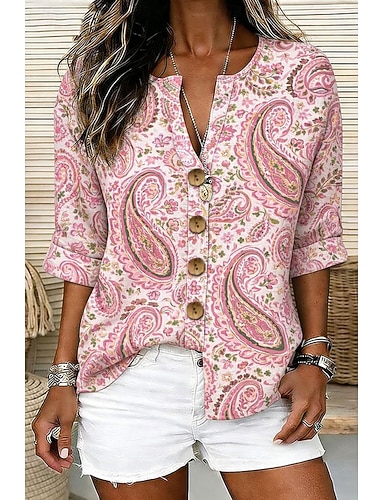 Per donna Camicia Stampato Grafico Paisley Elegante Vintage Tropicale Mezza Manica Scollo a V Top Regolari Quotidiano Ferie Abbigliamento mare Rosa Arancione Verde Estate Primavera