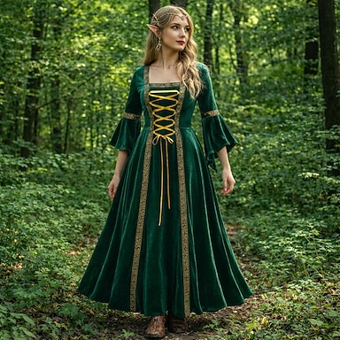 Medievale Rinascimento Abito da cocktail Abito da Ballo Straniero Elfico Costume Per donna Halloween Carnevale Mascherata LARP Fiera Rinascimentale Festival Adulti Vestito