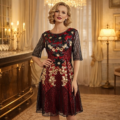 Anni Ruggenti Anni 1920 Lunghezza al ginocchio Abito Flapper Maniche corte Il grande Gatsby Charleston Paillettes Paillettes Costume Per donna Natale Carnevale Mascherata Festa a tema retrò Danza