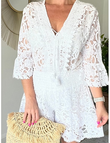 Per donna Set di Pantaloncini Bolero Top Manica Lunga Colletto a Camicia Tinta unica Moda Streetwear Casuale Quotidiano All'aperto Bianco Verde Estate Vestibilità regolare