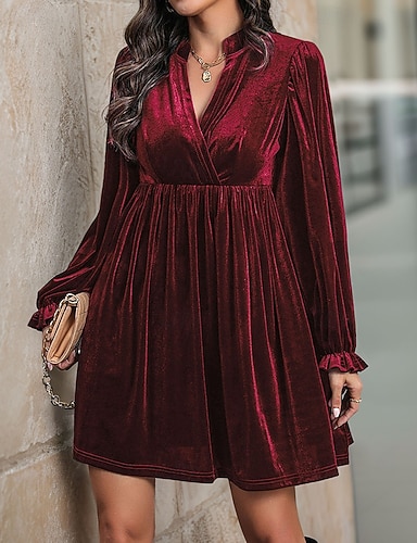 Abiti da festa A-Line scintillanti Abito elegante Formal da matrimonio lunghezza totale manica lunga scollo a V in velluto con pieghe