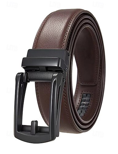 Cintura da uomo in vera pelle con fibbia a cricchetto automatica – cintura classica regolabile per lavoro, ufficio e uso quotidiano
