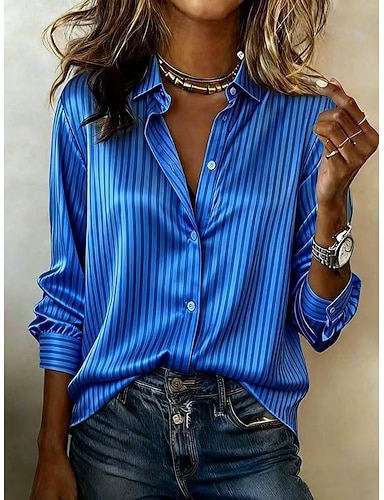 Per donna Blusa Grafico A righe Quotidiano Elegante Essenziale Manica Lunga Colletto a Camicia Top lunghi Quotidiano Blu Nero Giallo Rosa Estate Primavera