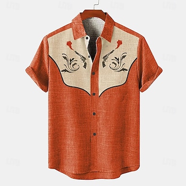 Per uomo Camicia camicia di lino camicie retrò Camicia d'epoca Camicia etnica Floreale Esterno Ufficio Blu Arancione Grigio Manica corta Collo ripiegabile Estate Primavera Abbigliamento
