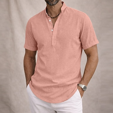 Per uomo Camicia di lino Camicia popover Camicia Estiva Abbigliamento da spiaggia Camicia con colletto alla coreana Semplice Casuale Quotidiano Blu Nero Bianco Rosa Manica Corta Colletto Estate