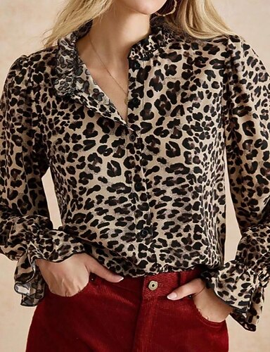 Per donna Camicia Blusa Bottoni Leopardo Elegante Vintage Casual Manica Lunga Collo Alto Top Regolari Ferie Uscire Leopardo Primavera Autunno