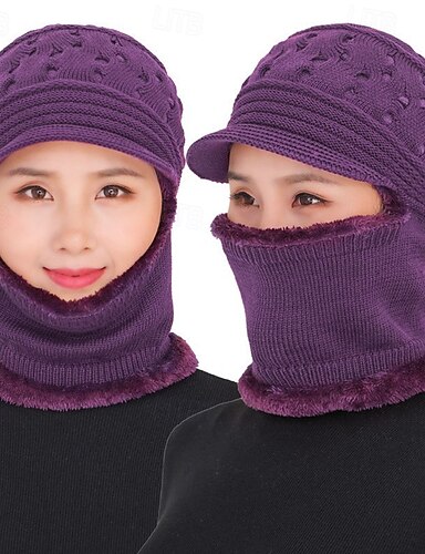 Cappello invernale da donna 3 in 1, lavorato a maglia, con scaldacollo e mascherina, ad alta elasticità, tinta unita, antivento, caldo, da ciclismo per il freddo