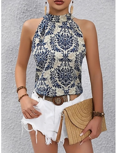 Linea ad A Lunghezza al pavimento Abito da Sera Da principessa Abito formale Elegante Vintage Senza Maniche Collo Alto Matrimonio Formale Tasca Raso con Stampa floreale