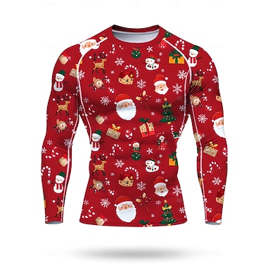Natale Per uomo Maglia a compressione Camicia da allenamento Maglia da corsa Manica Lunga Livello Base Grafico Asciugatura Rapida Compressione Elasticizzato Traspirante Allenamento in Palestra