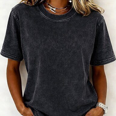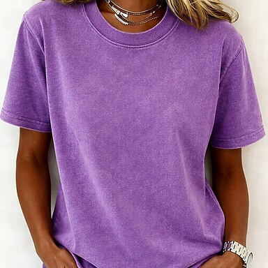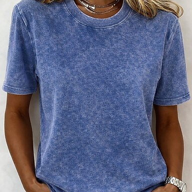 Per donna 100% cotone Maglia Henley Lavato Lavaggio acido Lavaggio vintage Vintage Moda Elegante Senza Maniche Manica Corta Manica corta Girocollo Henley Top Regolari Casuale Spiaggia Blu Rosa