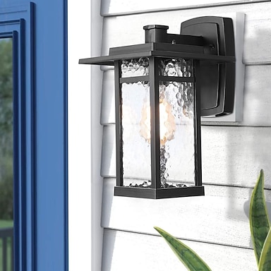 lampada da parete per esterni lampada da parete impermeabile retrò lampada da parete in alluminio antiruggine nero opaco con paralume in vetro ondulato d'acqua portico e lampada da cortile adatta per