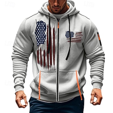 Per uomo Felpa con cappuccio Felpa con cappuccio a zip intera Felpa con cappuccio e zip Blu Nero Cachi Grigio scuro Grigio Con Cappuccio Bandiera Americana Con zip Tasca Casuale Quotidiano Sport