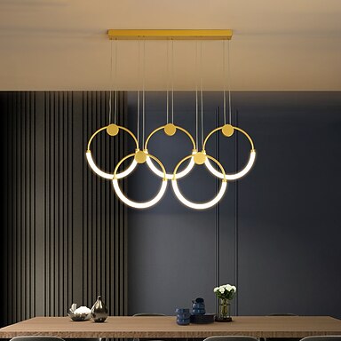 handelier plafoniera nordica post-moderna cerchio 3/5/7 testa lampada a sospensione in ferro battuto lunga linea appesa lampada da soffitto singola testa piccola sorgente luminosa a led lampada