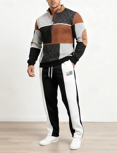 Per uomo Maglia Maglione Felpa con zip corta Nero Mezza zip Blocco di colori Jacquard Patchwork Sport & Outdoor Casuale Quotidiano Streetwear Essenziale Casual Autunno Inverno Abbigliamento Felpe con