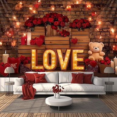 San Valentino arazzo Striscioni Coperta Rose Amore Cuori Carino Romantico Moderno Da serata Soggiorno Sfondi di ripresa Decorazione per proposta di matrimonio Arredamento per la casa