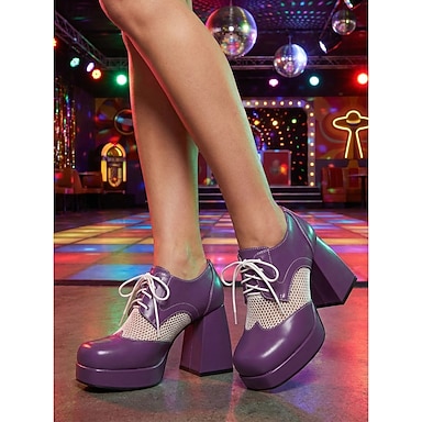 Sandali con plateau da discoteca retrò anni '70 da donna: sandali con plateau stringati rossi con dettagli in rete per feste in discoteca, eventi in discoteca &abiti da palcoscenico glamour