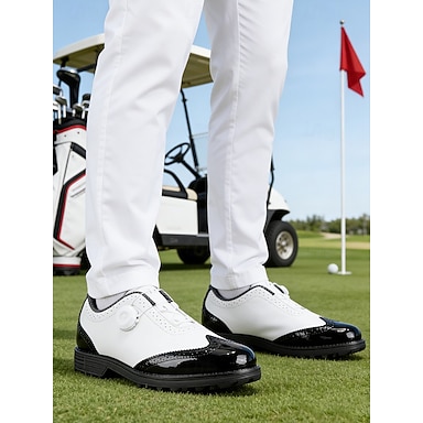 scarpe da golf da uomo eleganti bianche e nere: similpelle di alta qualità, resistenti, perfette per il golf e gli eventi professionali all'aperto